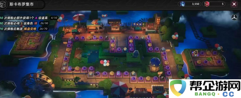 进入集市之后,玩家会看到一个很大的棋盘界面,上面密密麻麻分布着各种格子。抽卡的方式不是直接点击十连或者单抽,而是通过投骰子来决定前进的步数,投出几点就往前走几格,走到哪个格子就能拿到那个格子上的奖励。这种玩法有点像小时候玩的飞行棋,但是奖励可比飞行棋丰富多了,角色、武器,各种材料都有可能获得。